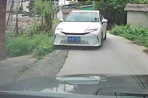 早春两车在村里小路上相遇,结果对面汽车为了避让都磕到底盘了